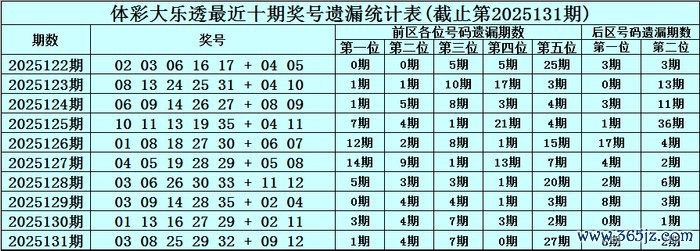 第2025131期奖号:03 08 25 29 32 + 09 12 ,诸君号码遗漏期数为:1期、4期、7期、0期、27期 + 6期、2期。