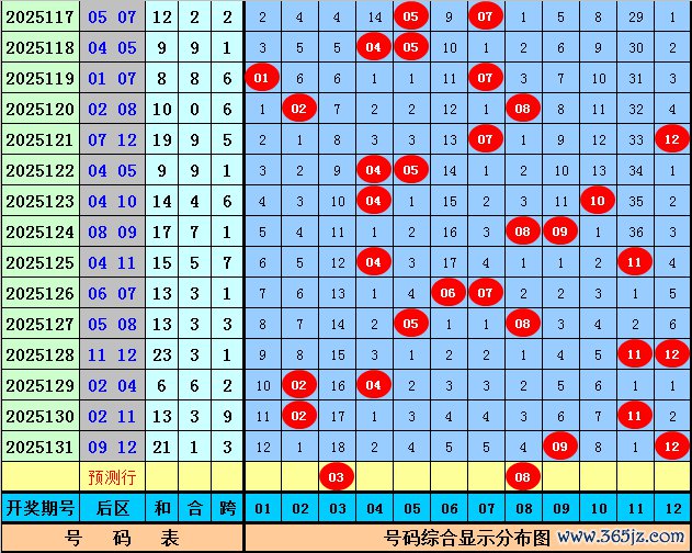 后鉴别析:后区上期开出号码09和12,分别遗漏6期和2期,当今后区01-12区间冷温热号码个数比为2:5:5,本期后区注重号码03+08。
